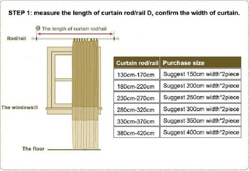 Чтобы определить готовую ширину, измерьте ширину гардинного стержня. Для максимальной полноты, вам нужно заказать шторные панели как минимум в 2-3 раза больше ширины вашего окна, чтобы добиться надлежащей полноты.