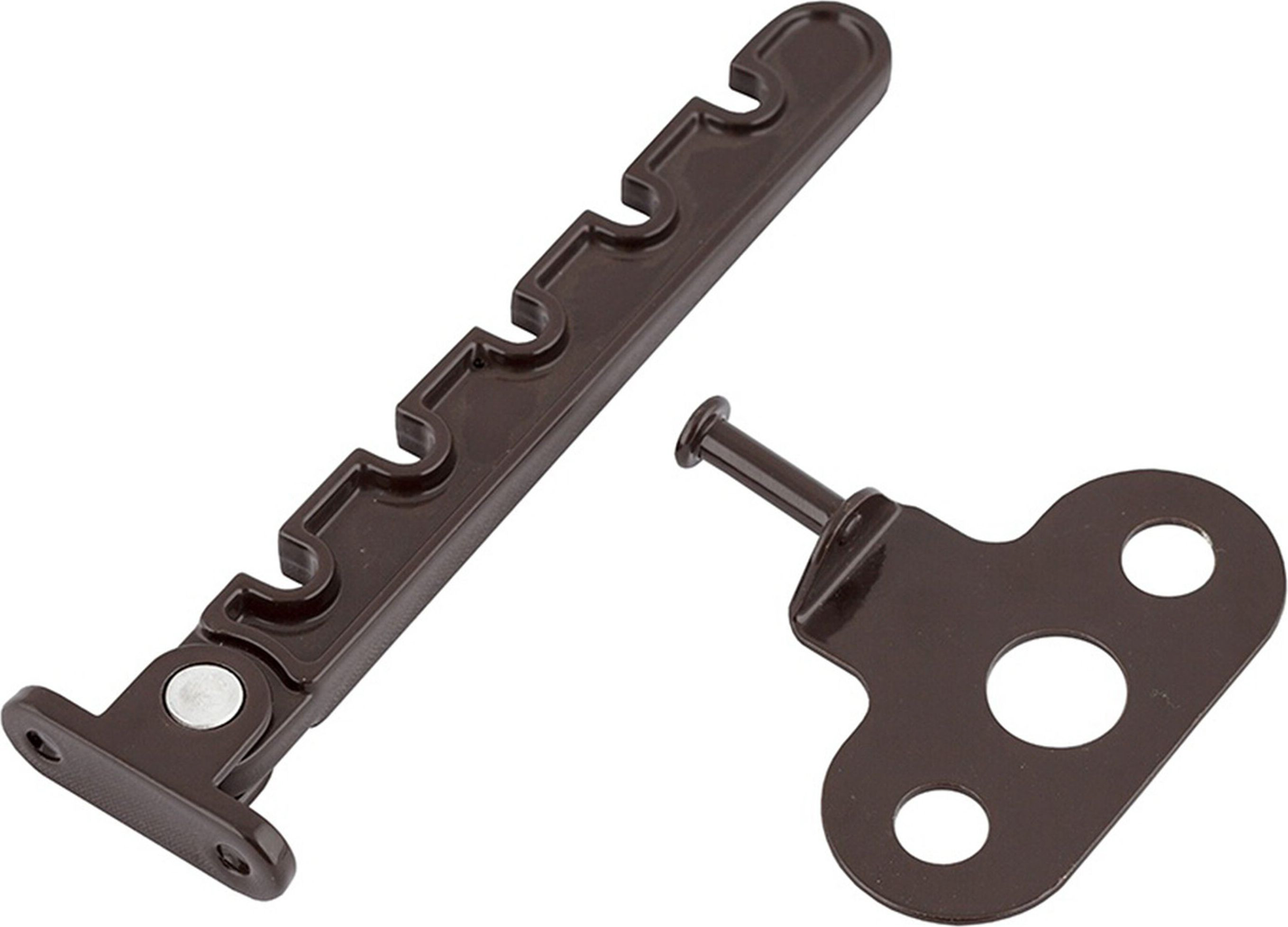 Ограничитель пластикового окна – это разновидность оконной фурнитуры, которая позволяет фиксировать положение открытой створки окна в нужном положении с помощью гребенки. Фиксация створки исключает изменение угла ее открытия от воздействия порывов ветра и сквозняка.