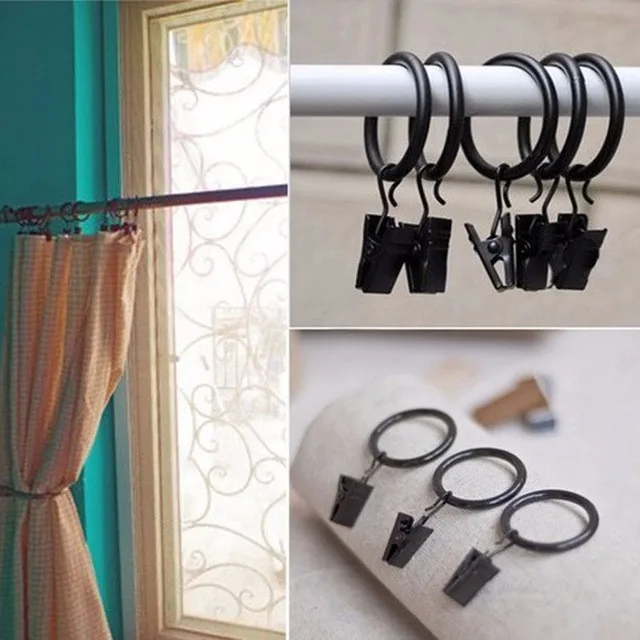 Кольца могут поставляться с крючками, штифтами или зажимами (более распространены кольца для штор с крючками), и все, что вам нужно сделать, это продеть через них карниз или стержень. Чтобы быть эффективным, диаметр колец должен быть как минимум на ½ дюйма больше диаметра шеста.