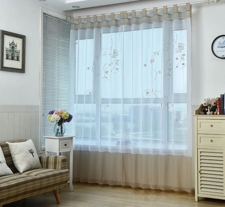 Длина (она же высота) тюля может оставаться разной. Если вы хотите длинное полотно, которое не касается пола, то расстояние до напольного покрытия должно составлять минимум 5 см.