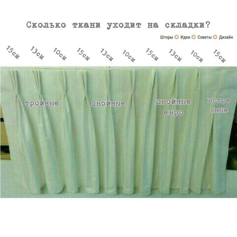 Итак, для портьерной ткани этот коэффициент составляет 1,7, для вуали и органзы с рисунком – 2, а для тонкой органзы без рисунка – 3.