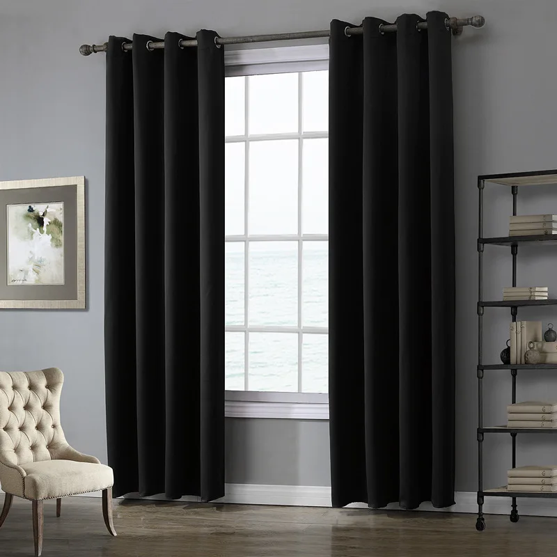 При выборе плотных штор обратите внимание на материал, цвет и плотность плетения, которые влияют на способность штор не пропускать свет. Если цель состоит в том, чтобы максимально приблизиться к 100-процентному уменьшению света, стремитесь к черной или более темной ткани. В то время как более легкие ткани все еще могут блокировать значительную часть света, черный цвет лучше поглощает тепло, свет и звук.