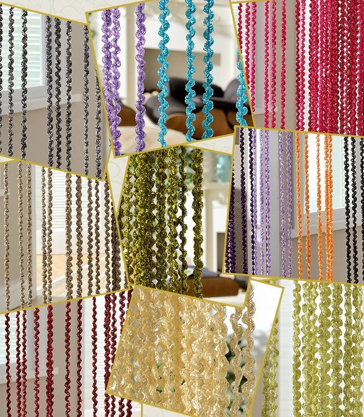 Нити могут находиться в прямом или заплетенном состоянии, они гармонично смотрятся с бисером, бусинами, декоративными каменьями, стразами и стеклярусом. Вариантов комбинирования множество. Дополнение аксессуаров, сочетание с другими моделями занавесок – все зависит от творческого замысла.