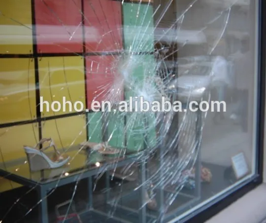 Так же защитная пленка применяется во избежание получения травм при взрывах и ураганах, удерживая на себе большее количество осколков поврежденного стекла.
